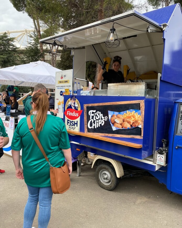 Con un’Apecar completamente brandizzata, abbiamo portato i Fish & Chips di Findus nel cuore dell’evento Six Nations Rugby, tra tifosi, famiglie e appassionati, trasformando l’area esterna dello stadio in un punto di incontro e convivialità .