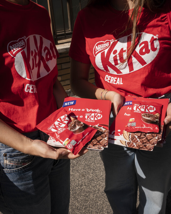 Un team di hostess ha distribuito confezioni di cereali KitKat al cioccolato, offrendo a studenti e professori una pausa golosa tra una lezione e l’altra — o la carica giusta prima di un esame.
